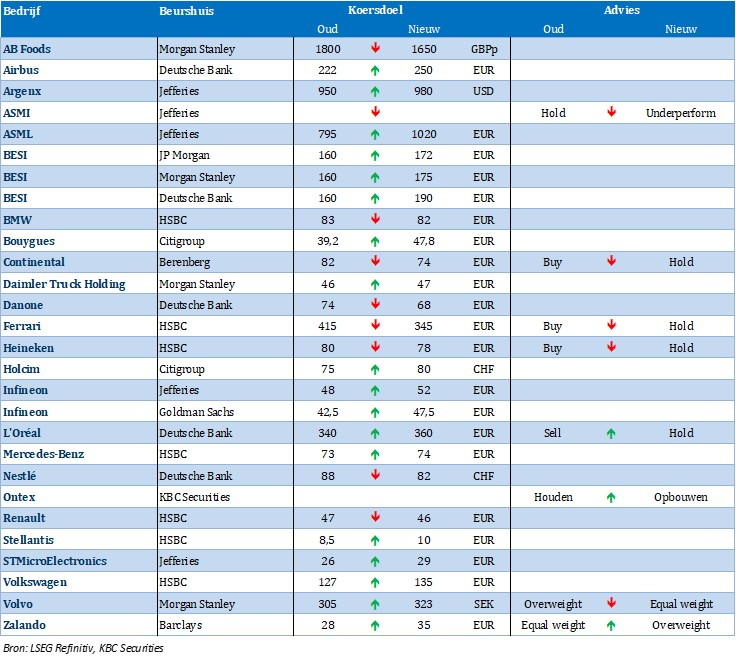 Nieuwe aanbevelingen voor aandelen