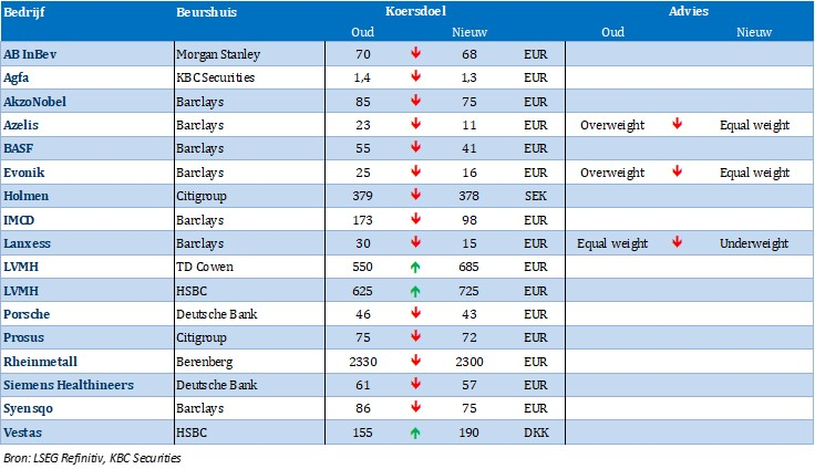 Nieuwe aanbevelingen voor aandelen