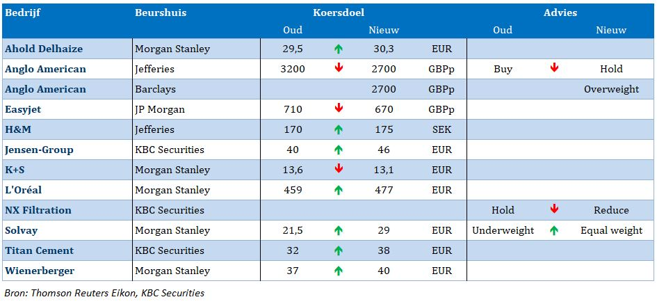 Nieuwe beleggingsaanbevelingen voor aandelen