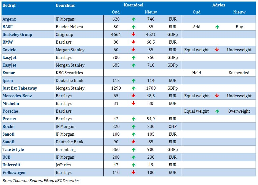 Nieuwe beleggingsaanbevelingen voor aandelen