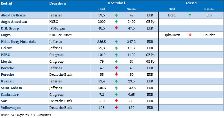 Nieuwe beleggingsaanbevelingen voor aandelen