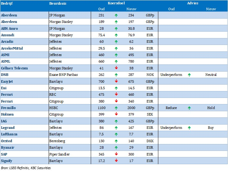 Nieuwe beleggingsaanbevelingen voor aandelen