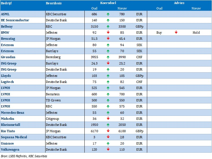 Nieuwe beleggingsaanbevelingen voor aandelen