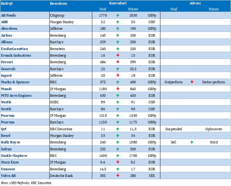 Nieuwe beleggingsaanbevelingen voor aandelen