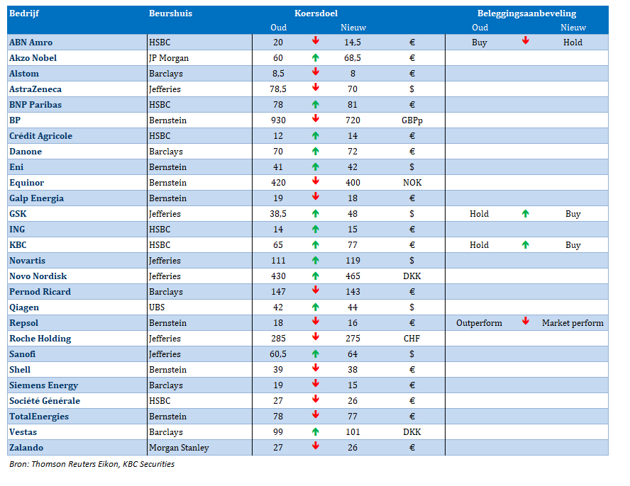 Nieuwe beleggingsaanbevelingen voor aandelen
