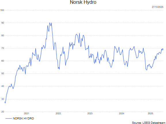 Norsk Hydro: derdekwartaalwinst wordt gedrukt door lagere aluminiumprijzen