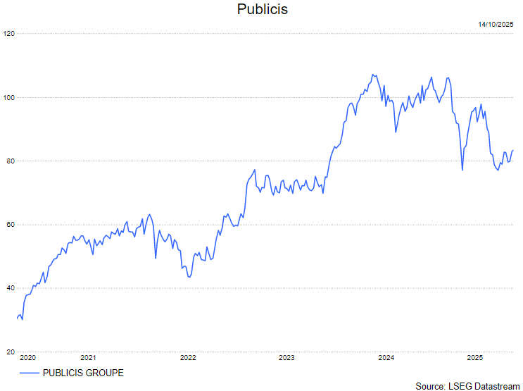 Publicis publiceerde mooie resultaten en zag de organische omzet stijgen met 5,7%, boven verwachtte 5,25%. Het management verwacht dat organische omzet dit jaar zal uitkomen op een groei van 5-5,5%; hiervoor was de verwachting +5% De vrije kasstroom ziet het manaement uitkomen boven 1,9 miljard euro, welke hiervoor op rond 1,9 miljard euro werd verwacht. De operationele marge blijft ongewijzigd op 18%. Ze zien geen tekenen van een terugval bij hun cliënteel. Zo zien ze geen grote beknibbelingen op de marketing budgetten, maar zien ze juist een stijgende vraag naar hun AI- gerelateerde producten en diensten.