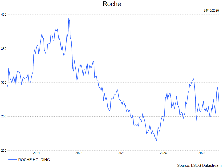 Binnen de farmadivisie steeg de omzet met 7% CER tot ongeveer 11,6 miljard euro, terwijl de diagnostiekdivisie slechts 2% CER groeide tot 3,3 miljard euro. Belangrijke groeimotoren zoals Hemlibra, Ocrevus en Vabysmo presteerden onder de verwachtingen. Wisselkoerseffecten drukten de gerapporteerde groei met ongeveer 7,5 procentpunt, wat de aanhoudende valutadruk benadrukt.