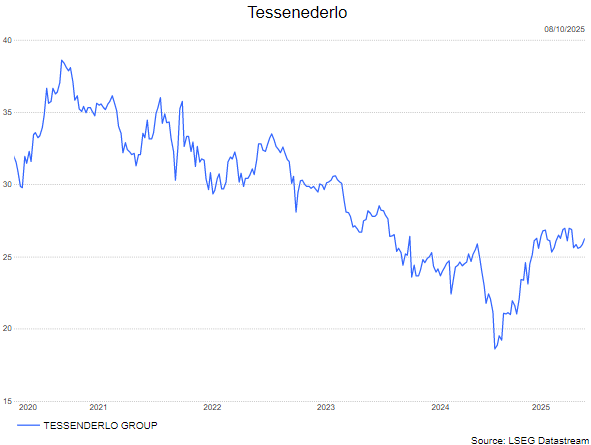 Tijdens het investeerdersmoment herhaalde Tessenderlo zijn richtlijnen voor 2025. De aangepaste EBITDA voor dat jaar wordt verwacht tussen de niveaus van 2023 en 2024, respectievelijk 318,7 miljoen euro en 256,6 miljoen euro. De eerste jaarhelft van 2025 liet alvast een stijging van 8,4% optekenen tot 163,4 miljoen euro. De KBC Securities-analist, Wim Hoste, bevestigt dat zijn prognose van 296,1 miljoen euro voor het volledige jaar ongewijzigd blijft na het evenement.