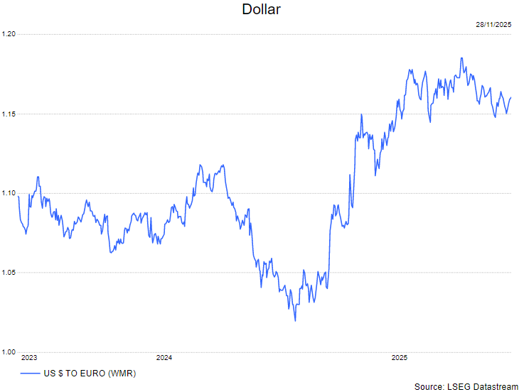 - De verwachting dat de Fed de rente in december zal verlagen speelde in het nadeel van de dollar.