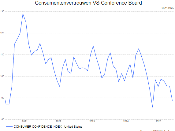 - Het consumentenvertrouwen daalde evenwel, wat wijst op lagere consumentenuitgaven in het vierde kwartaal.
