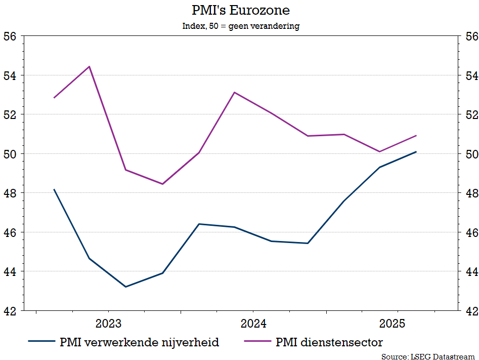 - Duitsland en Italië bleven quasi stabiel; Duitse uitvoer daalde, investeringen stegen licht, Italië zag netto-uitvoer geneutraliseerd door voorraadafbouw.