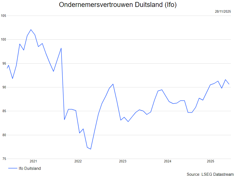 - Duitse industrie blijft bezorgd over concurrentiekracht; politieke besluitvorming verloopt traag, terwijl arbeidsmarkt tekenen van afkoeling vertoont.