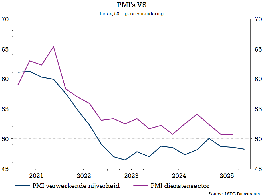 - De KBC macro-economen handhaven hun prognoses van 1,9% en 1,7% voor de Amerikaanse groei in respectievelijk 2025 en 2026.