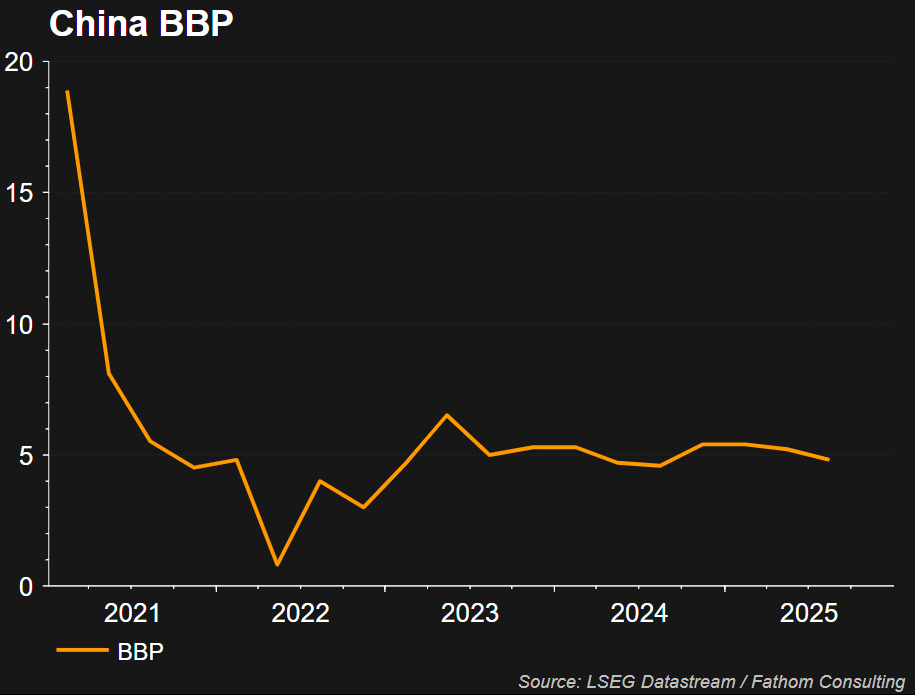 - In 2026 zou er ruimte kunnen zijn voor een bescheiden herstel van het groeimomentum. Een en ander zal grotendeels afhangen van de omvang en de aard van de stimulusmaatregelen van de overheid, die op hun beurt waarschijnlijk zullen afhangen van de groeidoelstelling voor 2026. Een doelstelling van 5% zal zonder verdere steun moeilijker te halen zijn, vooral gezien de aanhoudende uitdagingen (zoals de correctie in de vastgoedsector, de zwakke consumptiegroei, overcapaciteit, de vergrijzing en de hoge schuldenlast van lokale overheden en huishoudens).