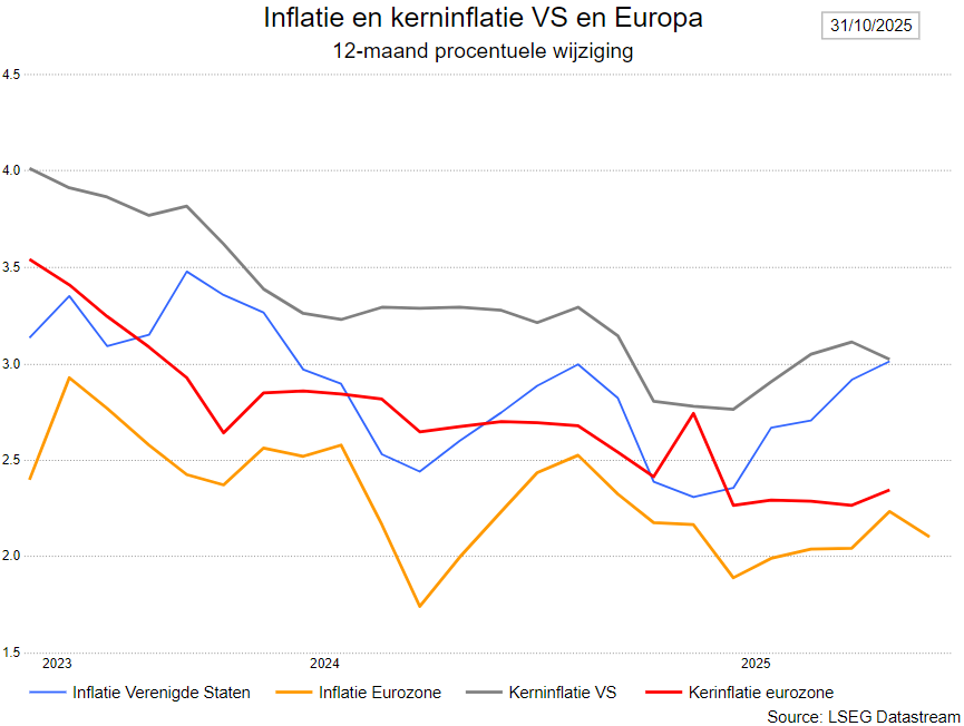 - Omdat de publicatie van de CPI werd uitgesteld door de shutdown in de VS en het PCE-rapport in lijn lag met de verwachtingen, houden de KBC macro-economen hun inflatieverwachting ongewijzigd op 2,8% voor 2025 en 2,6% voor 2026.