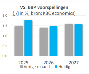 De macro-economen van KBC verwachten een bbp-groei van 1,8% in 2025, die zal vertragen tot 1,5% in 2026.