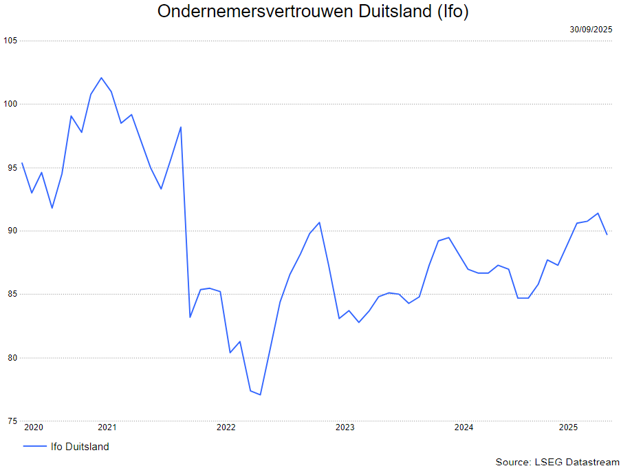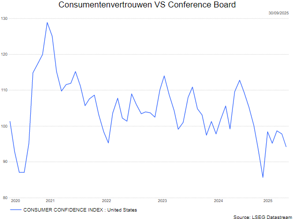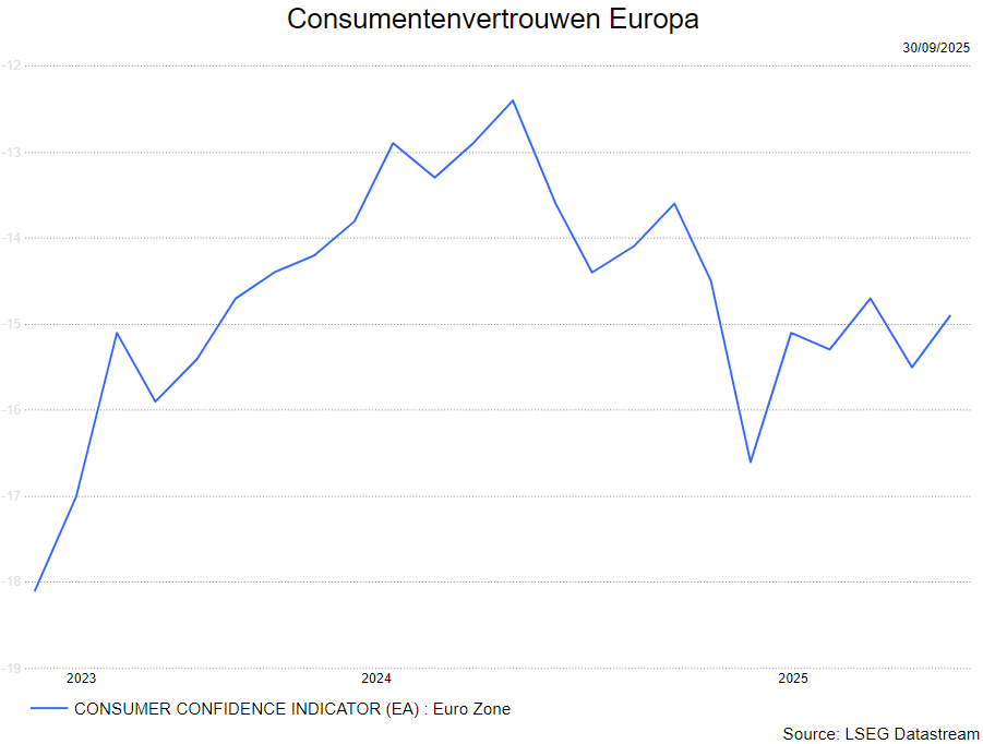 - Het consumentenvertrouwen herstelde in september (in tegenstelling tot de daling in augustus). De vrees voor de impact van de tarieven op de inflatie, op de economische groei, op de werkgelegenheid werd wat gemilderd nu er diverse akkoorden bereikt werden.