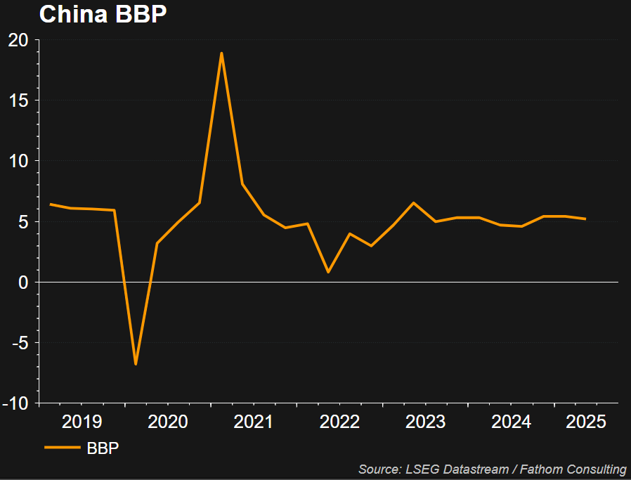 - Na de veerkrachtige Chinese reële bbp-groei van 5,2% (jaar-op-jaar) in het tweede kwartaal van 2025, kan de groei in de komende kwartalen te maken krijgen met neerwaartse druk van ‘anti-involutie’-maatregelen en de verhoogde Amerikaanse invoertarieven.