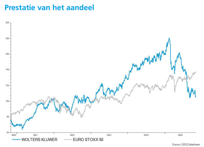 Wolters Kluwer meldt een versnelling in de organische groei binnen meerdere kernsegmenten, waaronder Health, Tax & Accounting en Corporate Performance. Tegelijkertijd kondigde het bedrijf een nieuw aandeleninkoopprogramma van 200 miljoen euro aan, na de afronding van het eerdere programma van 1 miljard euro. De operationele winst steeg met 15 procent, aldus KBC Securities-analist Thomas Couvreur.