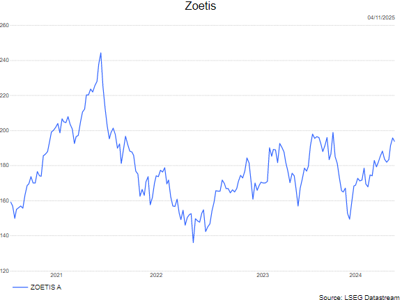 Zoetis verlaagde de omzetverwachting voor 2025 naar 9,40 tot 9,475 miljard dollar, met een organische omzetgroei van 5,5 tot 6,5%. De organische groei van de aangepaste nettowinst werd vernauwd naar 5,5 tot 7,0%. De aangepaste winst per aandeel blijft ongewijzigd op 6,30 tot 6,40 dollar.