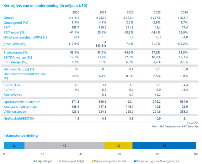 Binnen de BeNe Last Mile-divisie daalde de omzet met 1,4 procent tot 533,6 miljoen euro. Dit lag net onder de verwachtingen van KBC Securities (536 miljoen euro) en de gav (534 miljoen euro). De brievenvolumes daalden met 10,1 procent, wat slechter was dan de verwachte daling van respectievelijk 8,3 procent (KBC Securities) en 8,1 procent (gav). Daartegenover stond een bescheiden groei van de pakjesvolumes met 2,8 procent, terwijl analisten een stijging van 4,5 procent hadden voorzien.