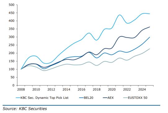 KBC Securities: “Tijdens 2025 hebben we vastgesteld dat verschillende geselecteerde aandelen onevenredig werden getroffen door kleine tegenslagen, wat leidde tot een ondermaatse prestatie ten opzichte van onze referentie-indices (Bel20, AEX, Stoxx50).”