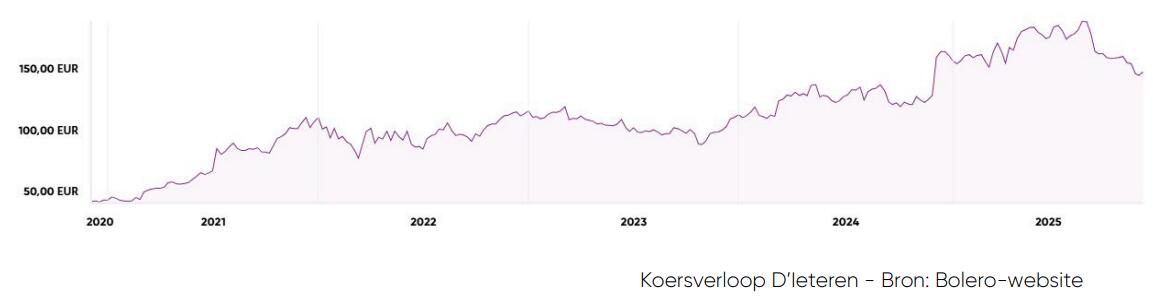 “Ondanks deze solide fundamenten schatten wij dat D’Ieteren momenteel handelt tegen een korting van 46% ten opzichte van onze SOTP-waardering (SOTP= um OF The Parts = som van de delen) van 275 euro per aandeel. De huidige koers impliceert bovendien een verwachte aangepast koerswinstverhouding voor 2026 van slechts 9,7x en een geconsolideerd vrijekasstroomrendement van 2026 van 8,8%. Bij toepassing van een meer redelijke korting van 20% handhaven wij onze “Kopen”-aanbeveling en een koersdoel van 220 euro.”