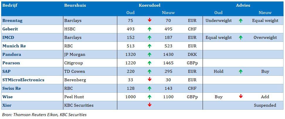 Barco: {{94703, BARCO NV, BAR}} Regal Cineworld gaat tegen 2030 4000 Barco Serie 4 laserprojectoren installeren in cinema’s in de VS, het VK en in Europa (Ierland, Israël, Polen, Tsjechië, Slowakije, Hongarije, Bulgarije en Roemenië). ’s Wereld tweede grootste bioscoopketen stapt op laser over voor “een betere filmpresentatie”. KBCS handhaaft de opbouwen-aanbeveling en koersdoel van 13,2 euro.