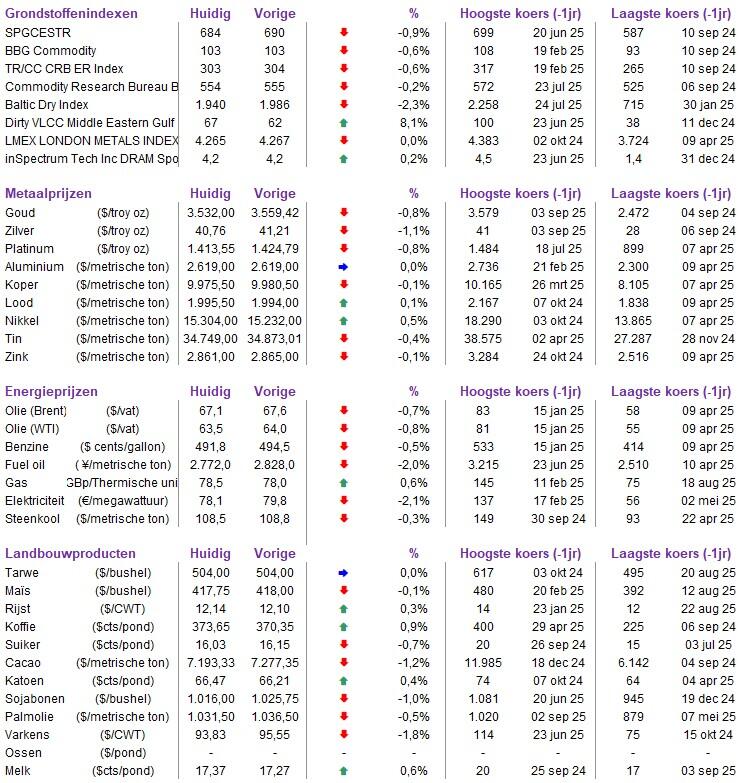 - Onderliggend is er natuurlijk niets veranderd: de schulden blijven hoog, net zoals de tekorten, de monetaire politiek moet bijgesteld worden, de toekomstige facturen blijven oplopen en moeten gefinancierd worden, en temidden van dat alles hebben regeringen amper slag- of daadkracht om aan uitdagingen van welke aard dan ook aan te pakken. De dollar profiteerde in zekere zin door alweer niet te dalen (€1 = $1,1651), terwijl de bitcoin moest bekomen van zijn recente herstelrally (110.417 dollar) en de goudprijs op 3,536 dollar per ounce stabiliseerde.