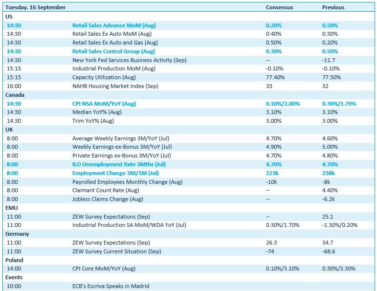 - Er staat vandaag behoorlijk wat nieuws op de economische kalender. In de VS spant een update van de kleinhandelsverkoop in augustus de kroon, geflankeerd door de industriële productie in augustus. En terwijl Canada inzicht geeft in de evolutie van de consumentenprijzen, komt het VK met werkloosheidsdata uit juli op de proppen.