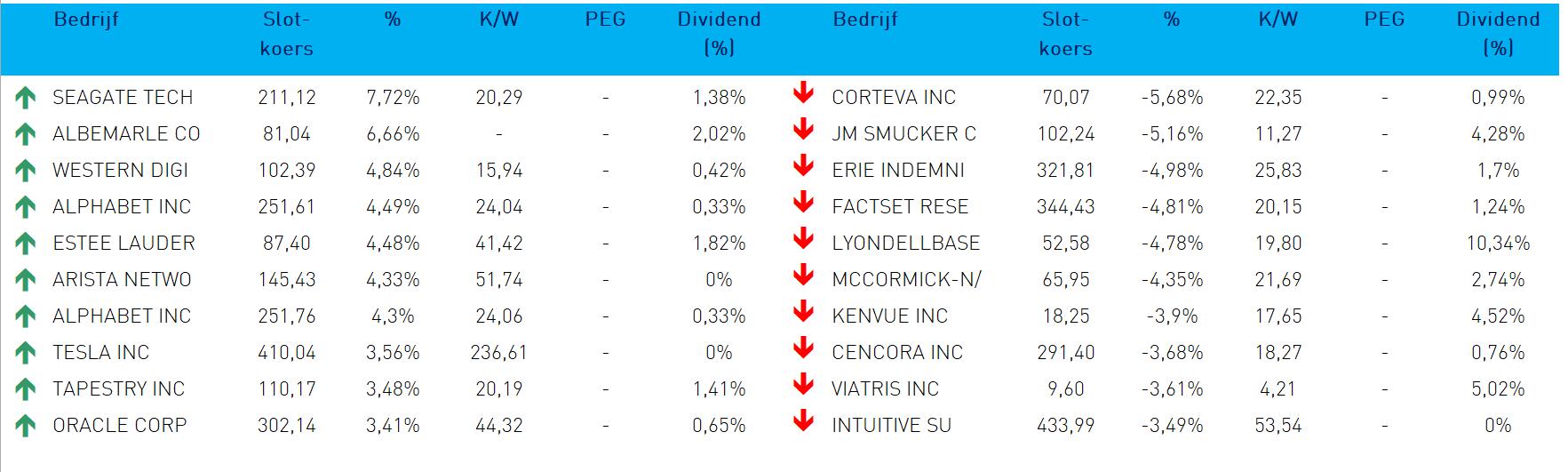 - Alphabet {{10390991, ALPHABET INC., GOOGL}}: het technologiebedrijf, met onder meer Google in zijn portfolio, bereikte voor het eerst een beurswaarde van 3 biljoen dollar dankzij AI-optimisme en een gunstige antitrustuitspraak. De aandelen stegen tot recordhoogte en zijn dit jaar al met meer dan 32% gestegen, waarmee Alphabet de best presterende 'Magnificent 7'-aandeel is. Een rechtbank oordeelde dat Alphabet zijn Chrome-browser en Android-systeem mag behouden, wat investeerders geruststelde. Daarnaast boekte de clouddivisie in het tweede kwartaal een omzetgroei van bijna 32%, mede dankzij investeringen in eigen chips en het Gemini AI-model.