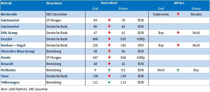 - Het koersdoel voor Kuehne + Nagel gaat bij Deutsche Bank van 225 naar 182 CHF en de aanbeveling verandert van Buy naar Hold