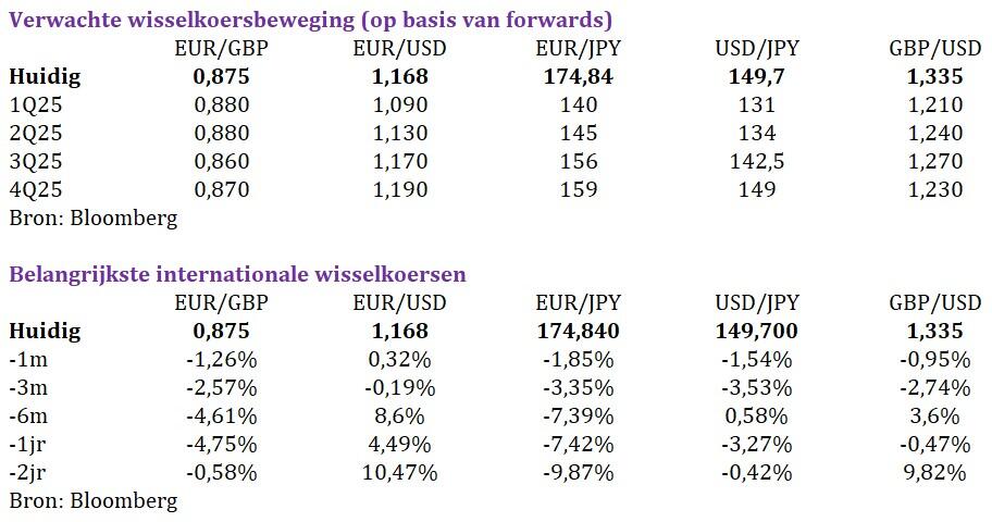 - Het verminderende rente-optimisme omtrent renteverlagingen door de Fed hebben de dollar een impuls gegeven. Tegenover de euro steeg de ‘greenback’ vannacht bij 0,6% (€1 = $1,1654), terwijl de Japanse yen in zeer zwaar weer blijft zitten. De munt wordt rond het niveau van 150 yen tegenover de dollar verhandeld ($1 = JPY 149,7 . Dichter bij huis daalde de waarde van het Britse pond lichtjes tegenover de dollar (£1 = $1,3341)