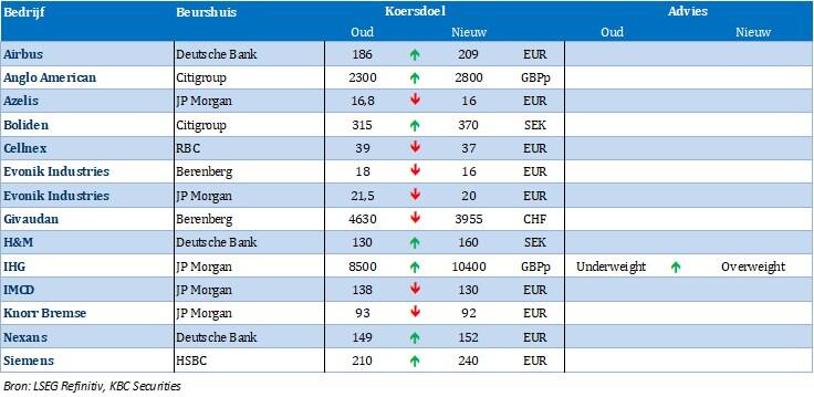 - Het koersdoel voor IHG gaat bij JP Morgan van 8500 naar 10400 GBPp en de aanbeveling verandert van Underweight naar Overweight