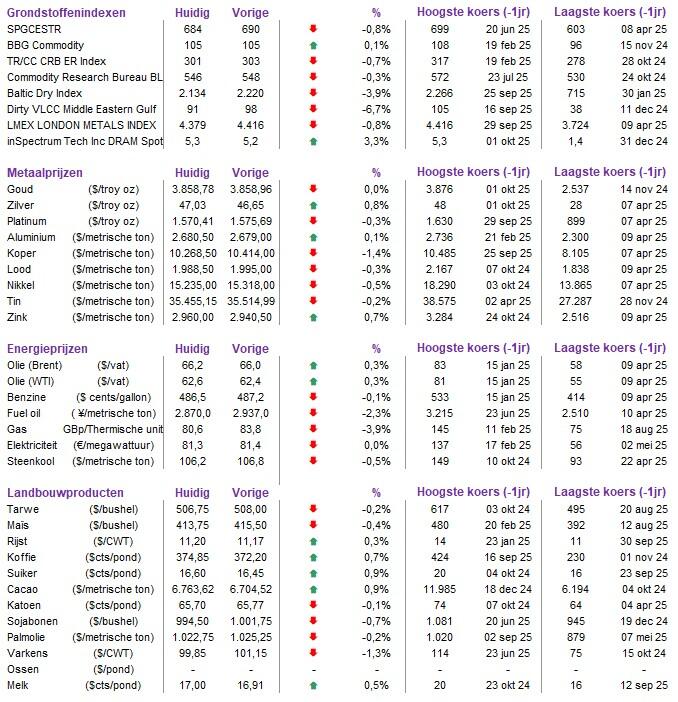 - Op de valutamarkt kwam de Amerikaanse dollar over de hele linie onder druk te staan. Goud steeg, waardoor zijn rol als hedge in periodes van verhoogd beleidsrisico werd versterkt. Bij de grondstoffen stond olie nog steeds onder druk, omdat de verwachting van een toename van het aanbod van de OPEC+ op het sentiment drukte, terwijl de vragen over de wereldwijde vraag blijven bestaan.