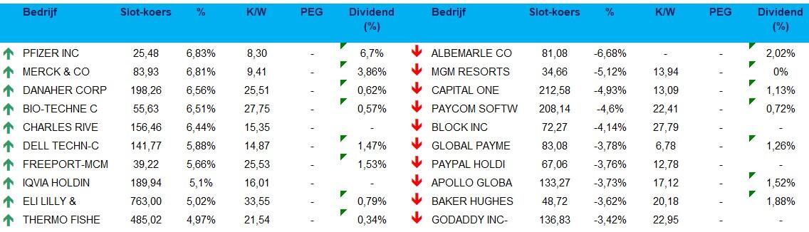 Pfizer: {{279709, PFIZER INC., PFE}} de farmagroep heeft een akkoord bereikt met de Amerikaanse overheid om geneesmiddelen in het Medicaid-programma voortaan aan te bieden tegen prijzen die gelden in andere ontwikkelde landen, in ruil voor vrijstelling van invoertarieven. Het bedrijf zal ook nieuwe medicijnen in de VS lanceren tegen deze ‘meest begunstigde’ prijzen en investeert 70 miljard dollar in onderzoek en productie op Amerikaanse bodem. De aangepaste prijzen, die tot 85% lager kunnen liggen, gelden vanaf 2026 en omvatten onder meer Xeljanz, Zavzpret, Eucrisa en Duavee. Het nieuws stuwde ook aandelen van andere farmabedrijven hoger.