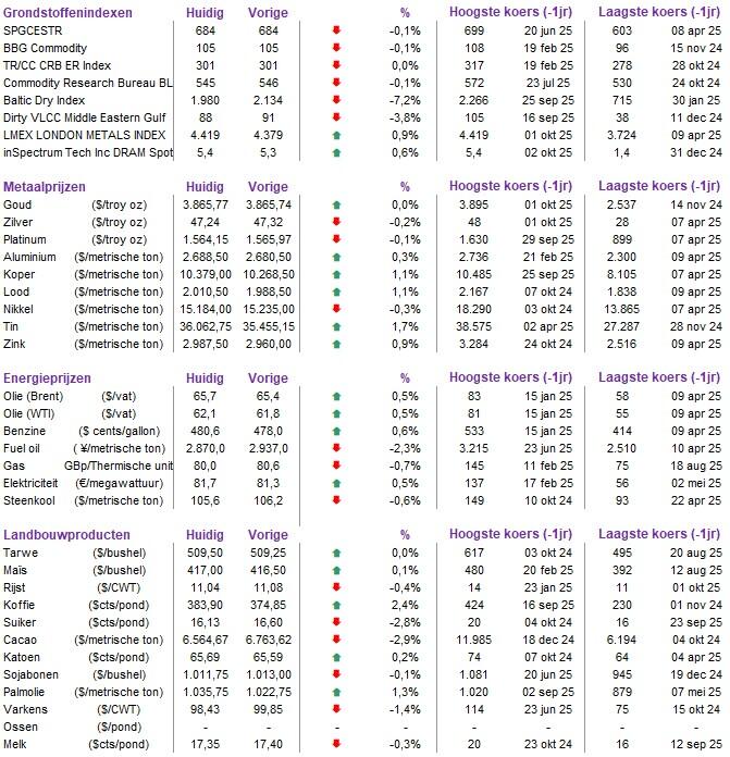 Grondstoffen overzicht