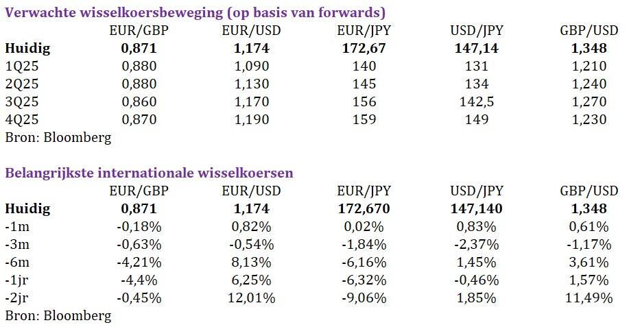 - De Amerikaanse dollar verzwakte, in navolging van de gematigde houding in de obligatierentes en de verhoogde risicopremie op de wereldmarkten. De EUR/USD steeg licht en de zwakte van de dollar ondersteunde de stijging van grondstofgerelateerde valuta's en valuta's van opkomende markten. Tegelijkertijd steeg goud naar nieuwe recordhoogtes, gestimuleerd door zowel lagere rentes als de vraag naar veilige havens in het licht van de onzekerheid over het beleid.
