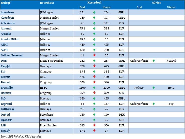- Het koersdoel voor ABN Amro gaat bij JP Morgan van 28 naar 30,8 EUR