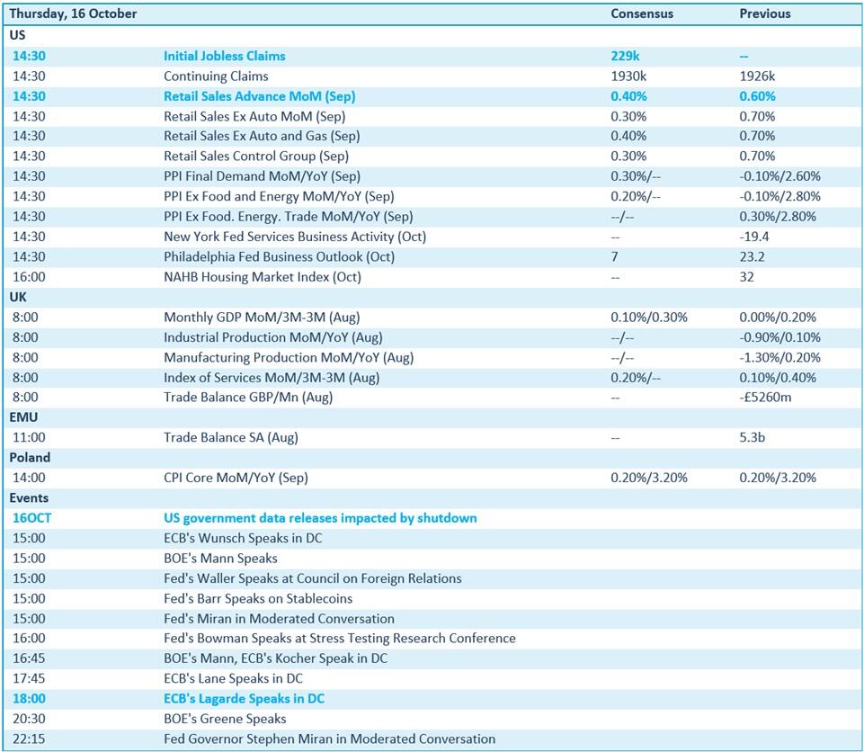 - De economische kalender komt opnieuw met een vraag : de VS heeft wel een pak op haar kalender, maar of die omgezet worden in cijfers is door de shutdown hoogst onzeker. Reken er dus niet op. Wel komen er Britse cijfers over de industriële productie aan, naast een update over de Britse én de Europese handelsbalans over augustus. En terwijl Polen trakteert met inflatiedata over september, mag ECB-topvrouw Lagarde zich opmaken voor een speech.
