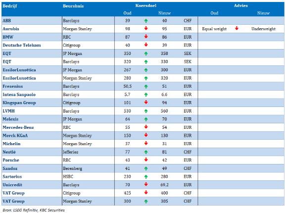 - Het koersdoel voor LVMH gaat bij Barclays van 530 naar 540 EUR, er is geen wijziging in de aanbeveling.