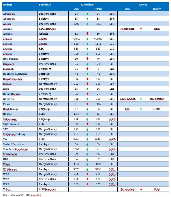 - Het koersdoel voor Barclays gaat bij Deutsche Bank van 607 naar 671 GBp, er is geen wijziging in de aanbeveling.