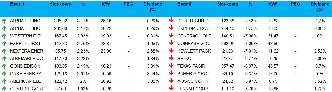 Ocado: {{37752501, OCADO GROUP PLC, OCDO}} de Britse online supermarkt en technologiegroep ziet zijn aandelen fors dalen nadat Kroger drie geautomatiseerde magazijnen sluit in januari. Door deze beslissing verwacht Ocado een daling van de vergoedingsinkomsten met ongeveer vijftig miljoen dollar volgend jaar, terwijl de aandelenkoers dit jaar al 40,5% verloor. Het bedrijf, ooit gewaardeerd op 21,7 miljard pond tijdens de pandemie, heeft nu een marktwaarde van minder dan twee miljard pond. Ocado rekent op meer dan 250 miljoen dollar compensatie van Kroger, terwijl Kroger een bijzondere waardevermindering van 2,6 miljard dollar boekt en mikt op een verbetering van de e-commercewinstgevendheid met circa 400 miljoen dollar tegen 2026..