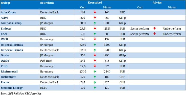 - Het koersdoel voor Enel gaat bij RBC van 7,8 naar 8 EUR en de aanbeveling verandert van Sector perform naar Underperform