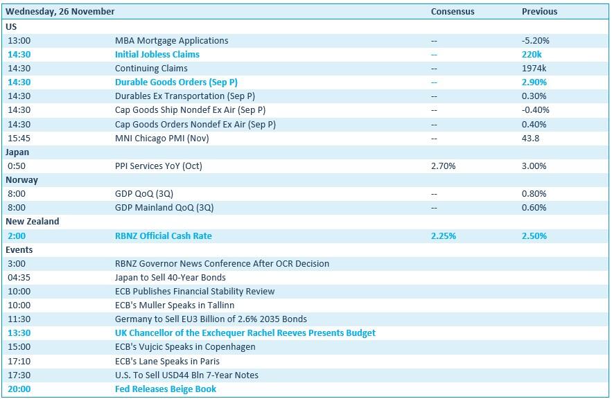 - Qua data kijken we vandaag naar de MBA hypotheekaanvragen, het aantal nieuwe werkloosheidsaanvragen en een update van de bestellingen voor duurzame en kapitaalgoederen. Verder levert de Fed ook nog een verse editie aan van zijn Beige Book, wat traditioneel een goeie vinger aan de economische pols biedt.