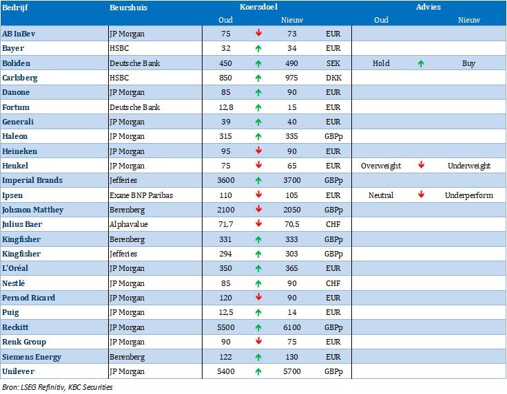 - Het koersdoel voor AB InBev gaat bij JP Morgan van 75 naar 73 EUR