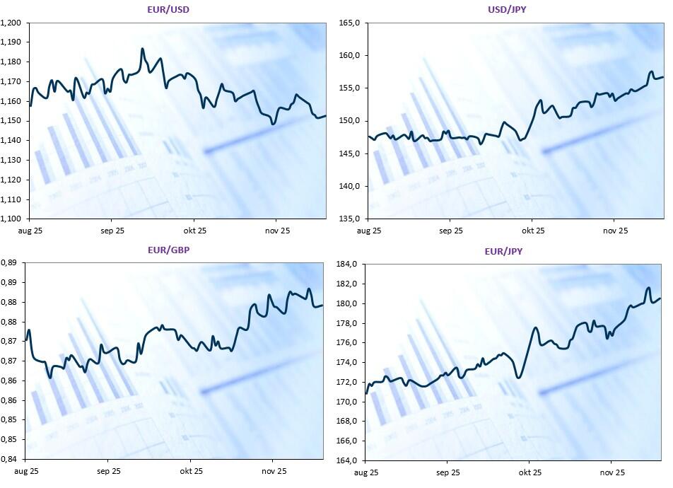 - Dat de zenuwen gespannen zijn, blijkt uit een quote van premier Takaichi. Die sluit de mogelijkheid niet uit dat Japan haar eigen Brits “Truss-moment” kan meemaken, ofwel een even plots als totaal verlies van vertrouwen in de markt omwille van haar expansieve begrotingsbeleid. De begroting van de Britse minister van Financiën Reeves kreeg gisteren trouwens wél een goedkeurend knikje van de markten, omdat het de financiële situatie van Groot-Brittannië op de lange termijn zou kunnen verlichten. Het Britse pond steeg naar $1,3247, het hoogste peil in een maand.