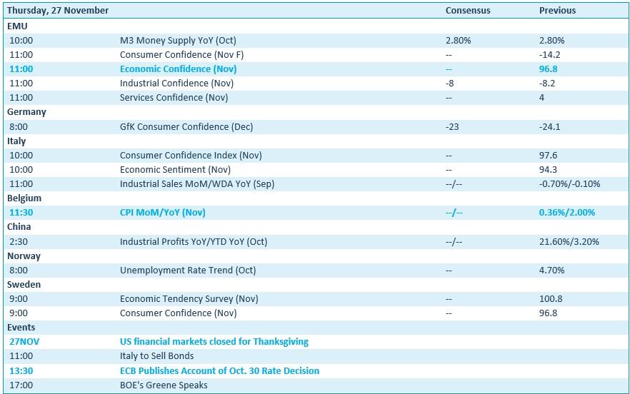 - Vandaag zijn de Amerikaanse markten gesloten voor de Thanksgiving-vakantie en ook vrijdag zal de handel daar héél erg beperkt zijn. U mag zich normaalgesproken dus opmaken voor wat rustiger vaarwater.