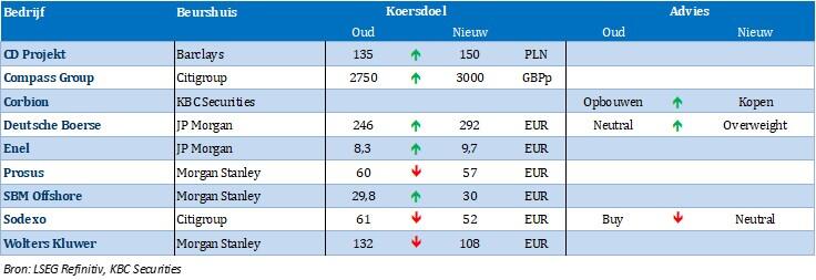 - Het koersdoel voor Deutsche Boerse gaat bij JP Morgan van 246 naar 292 EUR en de aanbeveling verandert van Neutral naar Overweight